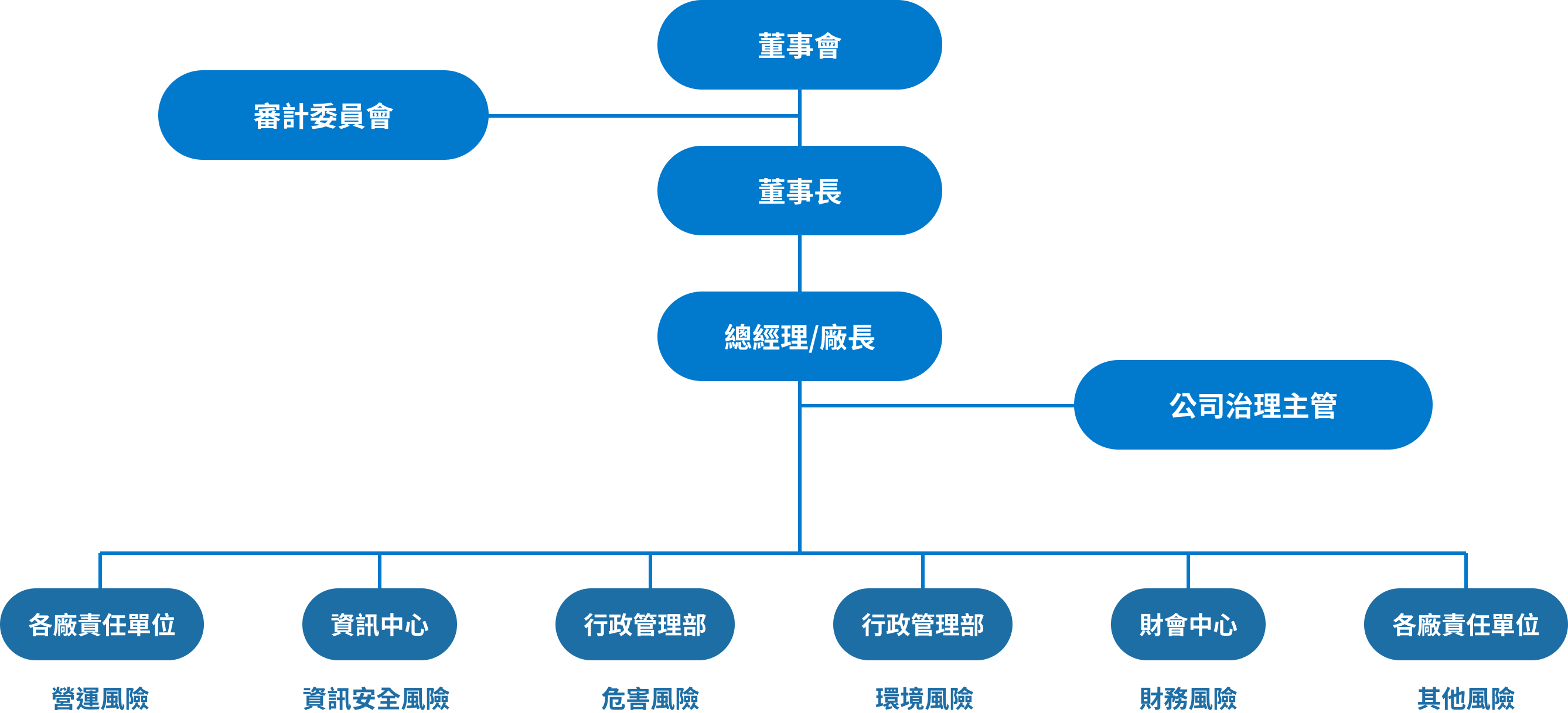 本公司訂定「風險管理政策」及「風險管理辦法」經2020 年5月12日董事會通過,以作為本公司風險管理之最高指導原則;本公司每年定期評估風險,並針對各項風險擬定風險管理政策,涵蓋管理目標、組織架構、權責歸屬及風險管理程序等機制並落實執行,以有效辨識、衡量,及控制本公司之各項風險,將因業務活動所產生的風險控制在可接受的範圍。董事會為風險管理政策之最高單位,確保風險管理之有效性,並負風險管理最終責任。審計委員會負責督導,聽取風險管理政策、程序、執行結果給予改善建議。每年風險評估的結果,先行向審計委員會報告後再向董事會報告。