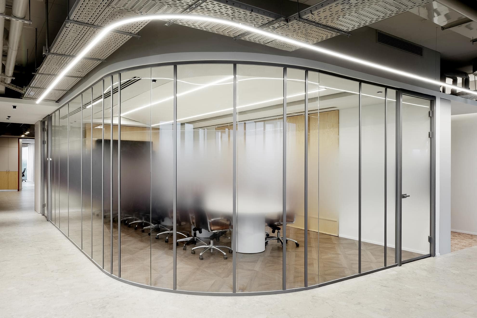 本案例為位於以色列 Rosh-Ha'Ayin 的西門子辦公室,由 En Design Studio 設計。照明方案採用高效能軟燈條,為現代化的開放式辦公環境提供穩定且高品質的基礎照明。燈具佈局精準契合室內的工業風設計與功能分區,透過簡約的線性與造型燈具強化空間層次,打造出兼具專業機能與美學價值的當代辦公解決方案。